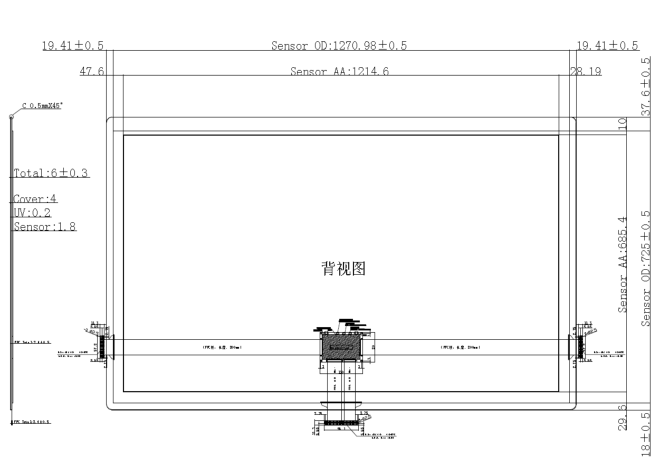 Outline of ITO Sensor | 1270.98*725±0.5mm |